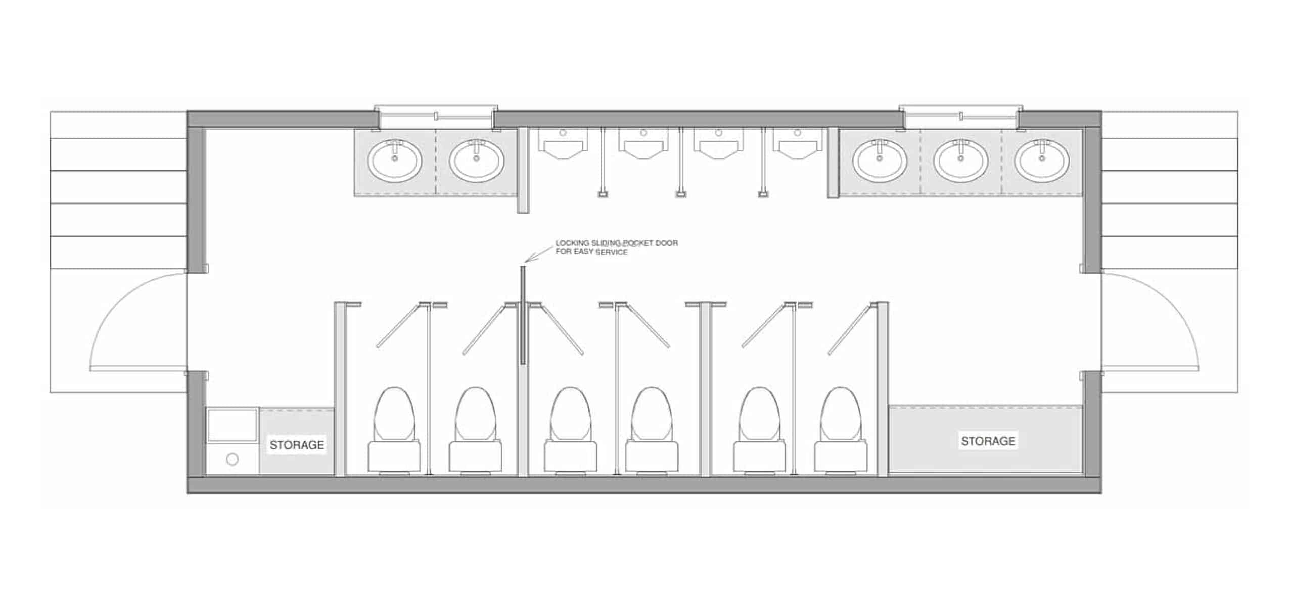 • Men’s Washroom: 4 Toilets, 4 Urinals and 3 Sinks